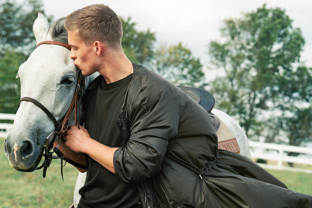 Focusing on free will, nature and beauty, the women’s wear campaign showcases models Edie Campbell and Anna Ewers in the Kentucky countryside, surrounded by horses. In one image, Edie Campbell even stands in perfect balance on a horse’s back. Filip Hrivnak and Vadim Ivanov appear in the men’s campaign, alongside actor Mitchell Slaggert, who is in total harmony with the animals around him. Musician Jake Lahrman makes an appearance too.