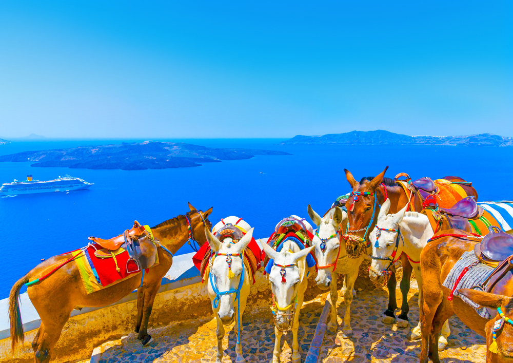 Donkeys and Santorini go together like pigeons and the Piazza San Marco in Venice. They’re an integral part of the local tourism scene, providing tourists much loved rides up and down the traditional steps. There are hundreds of donkeys lined up along the island ready to take visitors around, but their droppings are everywhere, so you may want to watch where you are stepping.