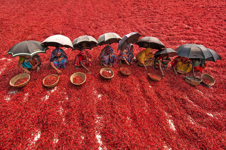 Abdul Momin, 27, a photographer from nearby Bogra, Bangladesh, travelled to the farms to capture the endless sea of red.