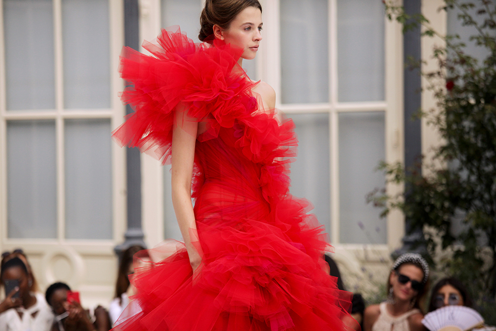 Being a British brand, there wasn’t a more fitting venue than the Embassy of the United Kingdom for Ralph & Russo’s autumn-winter 2019/2020 collection. The embassy gardens on the famous Rue du Faubourg Saint-Honoré were set in a way that recalled a 1930s-style “soirée en plein air,” according to the show notes. Flora, fauna, the majestic opulence of the Art Deco era and a 90-metre runway all helped bring the scene to life.