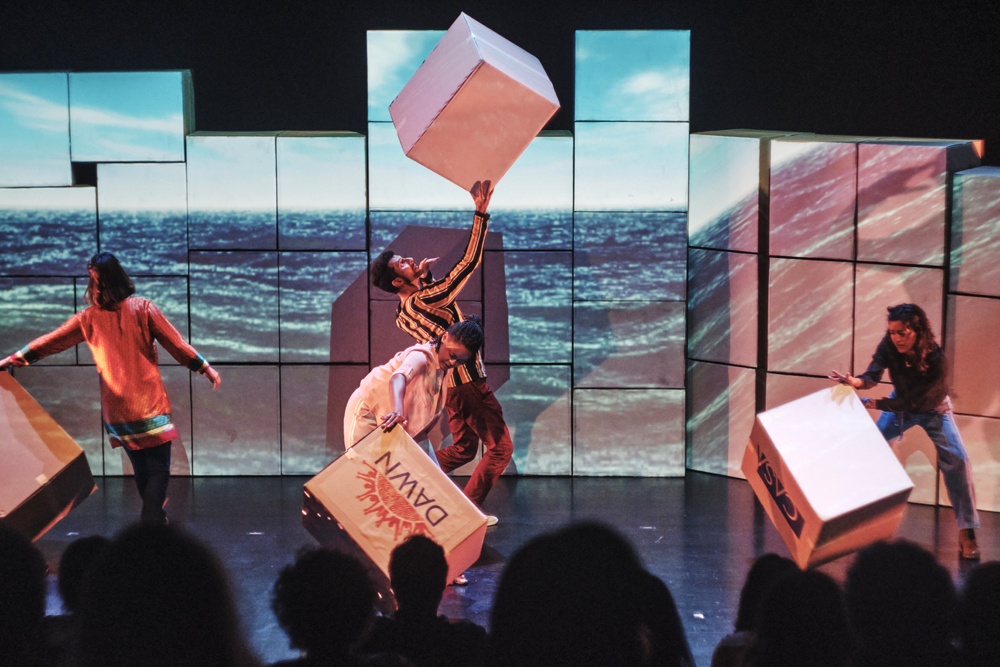 The diverse cast comes from places like El Salvador, Syria, Lebanon and Rwanda, and the performance incorporates the actors’ personal displacement histories. While CARTOGRAPHY was developed as part of New Victory Lab Works at The New Victory Theater in New York, some of the piece was developed in residence at NYU Abu Dhabi. The show uses an array of tools such as map-making and sound sensors that activate a virtual storm, developed in part by graduates from NYU Abu Dhabi’s Interactive Media Program in June 2018, integrating technology, performance and sculpture to create a memorable audio and visual journey.