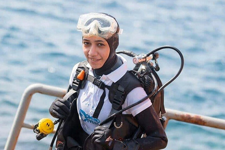 The 29-year-old diver, who has been diving since 2009, spends her days exploring the glimmering turquoise waters of the Red Sea. A pioneer in the field, Alosaimi holds a local record for the deepest dive by a Saudi female at 345 feet (105 meters). The public figure recently headed up the campaign for Nike’s hijabi swimwear collection. As founder of Pink Bubbles and Disconnect KSA, which since their establishment has been targeting female divers and non-divers, encouraging them to start scuba diving while also spreading awareness around the sport.