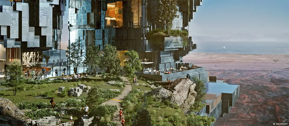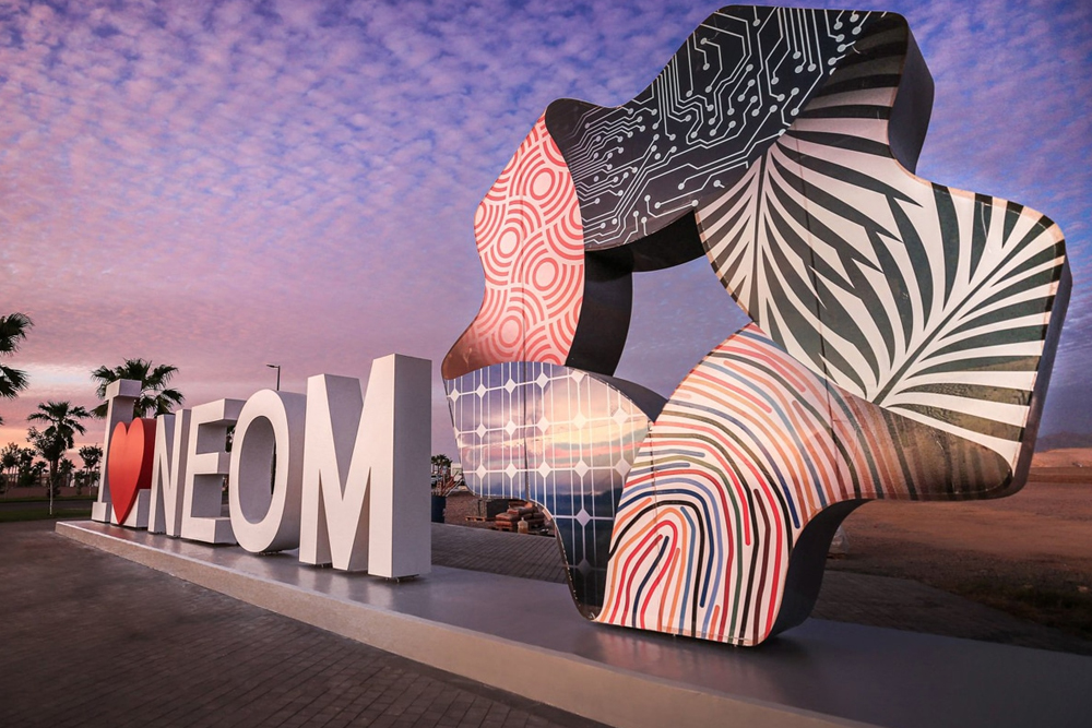 At the heart of the identity are representations of some of the most notable projects of Saudi Vision 2030, with a focus on enhancing the quality of human life. Symbolically, a man and a woman occupy the center, representing the vibrant Saudi youth, surrounded by icons of various Saudi ventures. Among the projects featured in the design are the renowned Diriyah Gate, Sindalah, AlUla Development, The Line, AlSoudah Development, Sports Boulevard, King Salman Park, Shuaiba Solar Power Plant, the Electric Car, Astronaut Program, and the Cube Project.